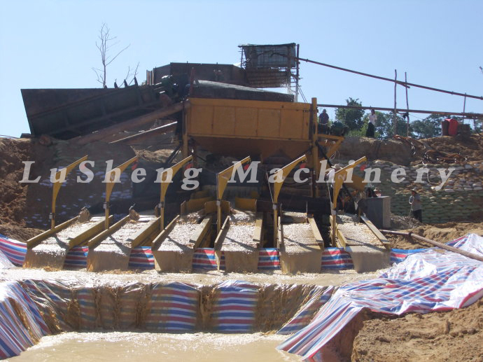 重選法作為砂錫礦的粗選不僅降低了浮選流程的成本和設(shè)備投資,同時對于單體解離度高的砂錫礦也可以重選即得到精礦。因此重選法和重選設(shè)備對砂錫礦的選礦是不可少的。砂錫礦中含金的礦不在少數(shù),在馬來西亞。較多的砂錫礦中有不少金的含量都比較高。選錫選金設(shè)備在馬來多個礦區(qū)已經(jīng)投入使用。