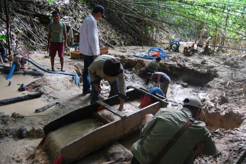 以下是劉總發(fā)來當(dāng)時(shí)人在開采沙金礦,和比較原始回收率低的簡易工具: