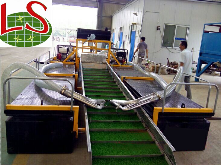 以前回收一般是采用浮選、氫化、堆浸等工藝進(jìn)行黃金回收,但是這些工藝都有缺點(diǎn),一是污染嚴(yán)重,二是浮選很多包裹的顆粒金收不住。所以現(xiàn)在使用比較廣泛的是重選法。采用重選設(shè)備將黃金進(jìn)行回收,重選設(shè)備有很多優(yōu)點(diǎn),比如沒有污染,另外重選設(shè)備有很多種可以根據(jù)礦料不同的情況來進(jìn)行并聯(lián)使用。比如回收顆粒金的光用來回收顆粒金,回收毛金、片金的光用來回收這兩種形態(tài)的。魯晟機(jī)械生產(chǎn)的尾礦重選設(shè)備,現(xiàn)在在多個礦區(qū)有所應(yīng)用,是用來回收選礦廠尾礦的。砂泵采金船
